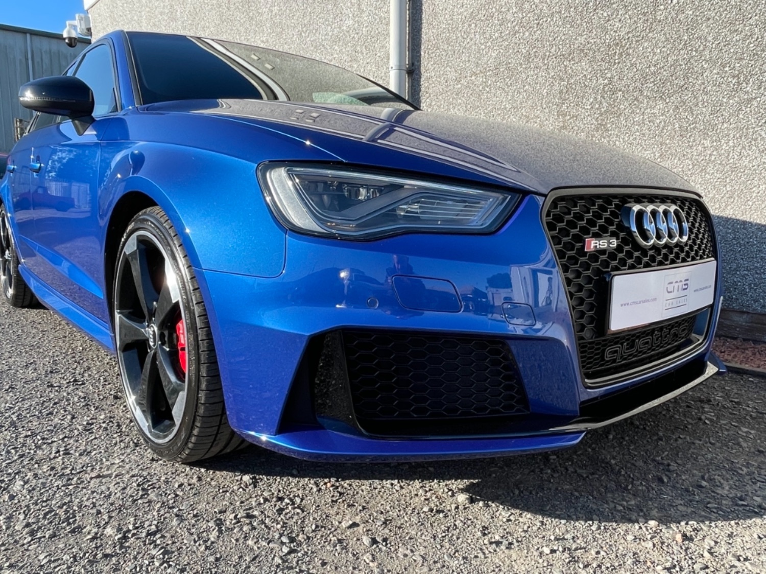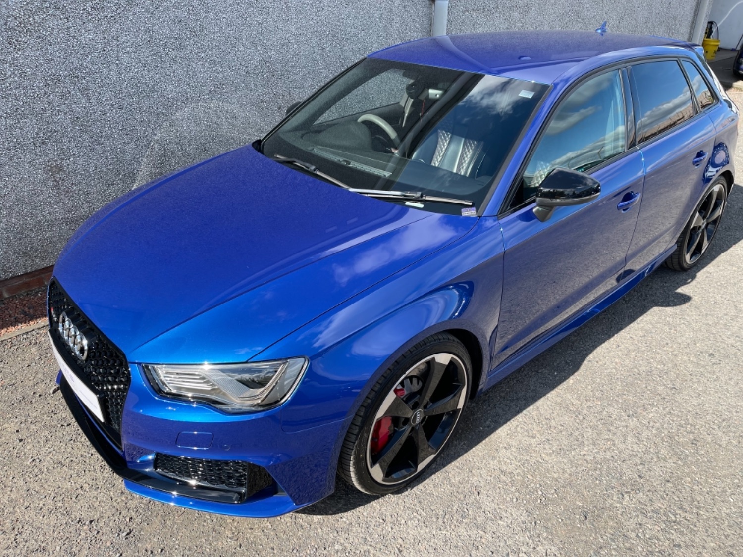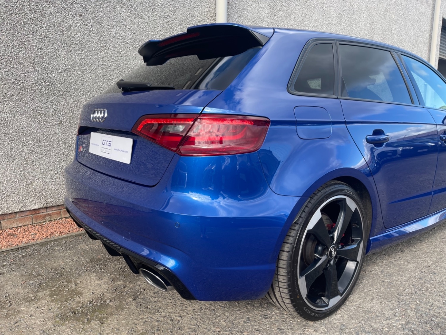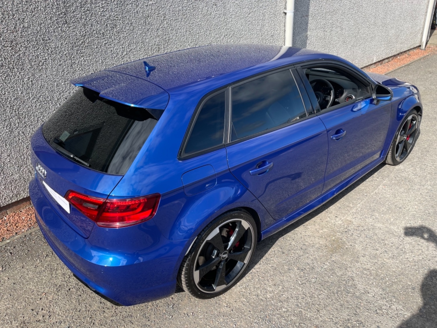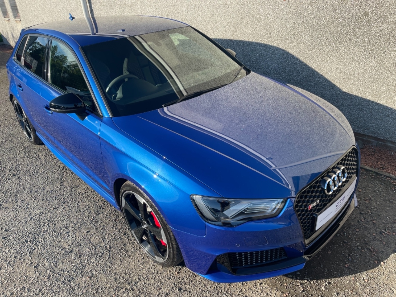 For sale Audi RS3 Sportback Quattro in Sepang Blue. 2016/16 reg with over £10000 of factory options.