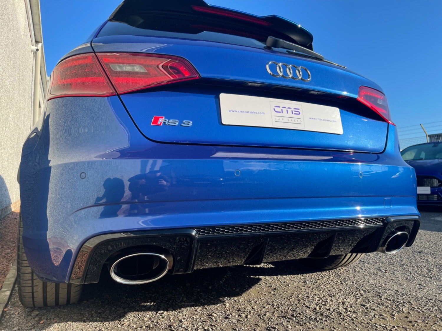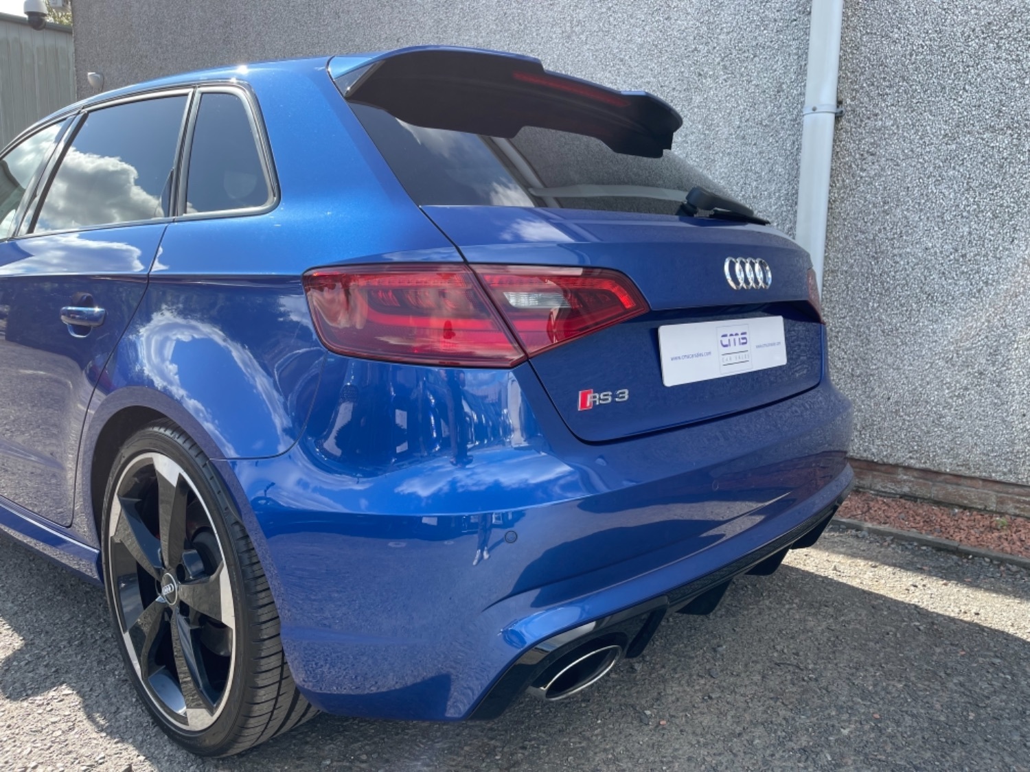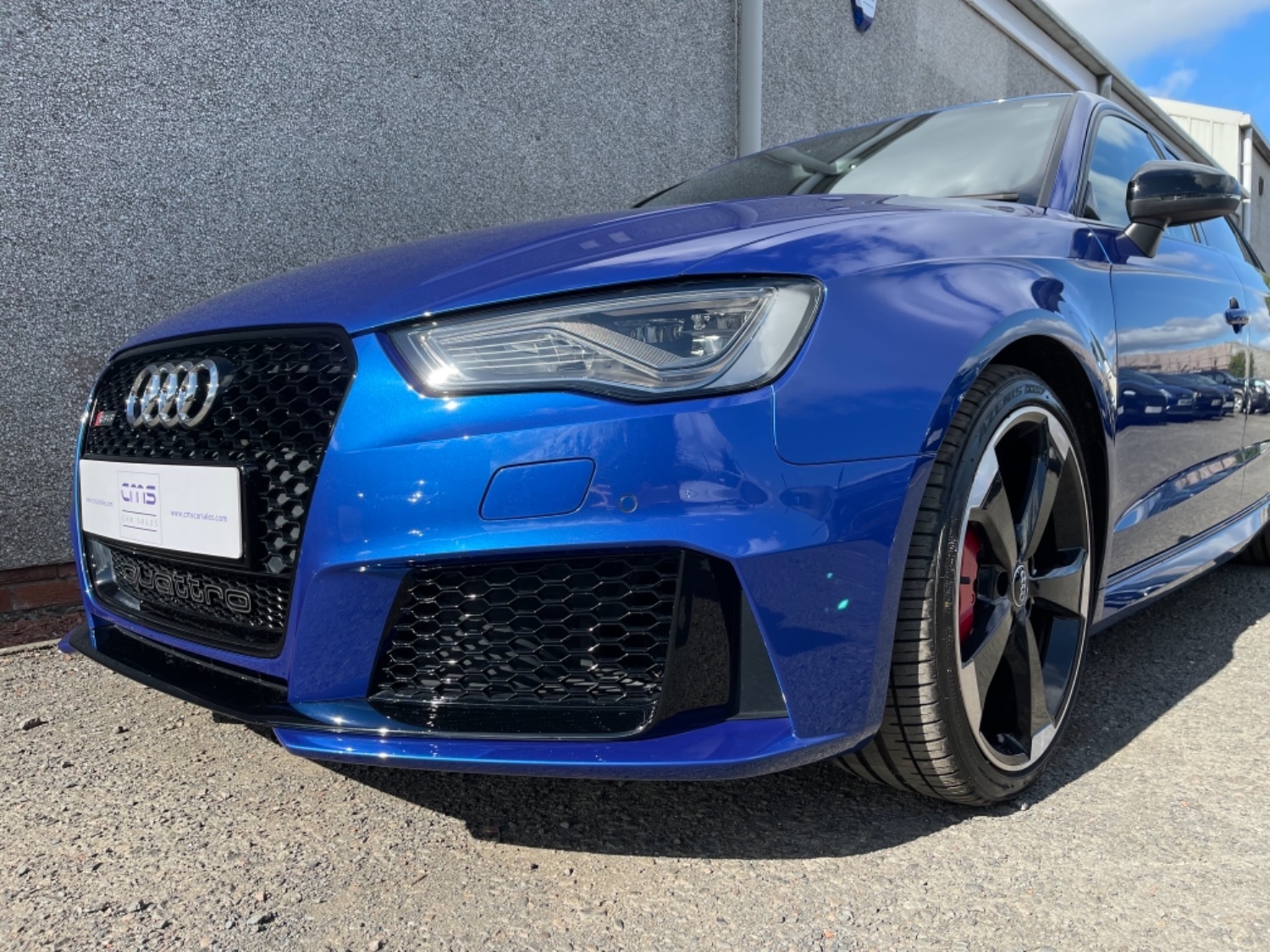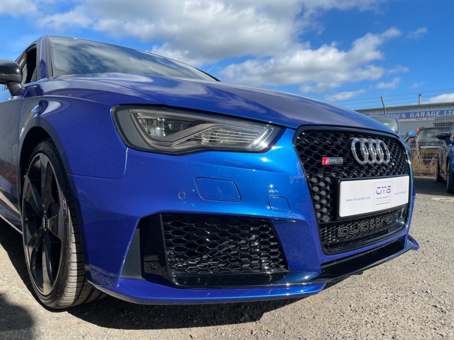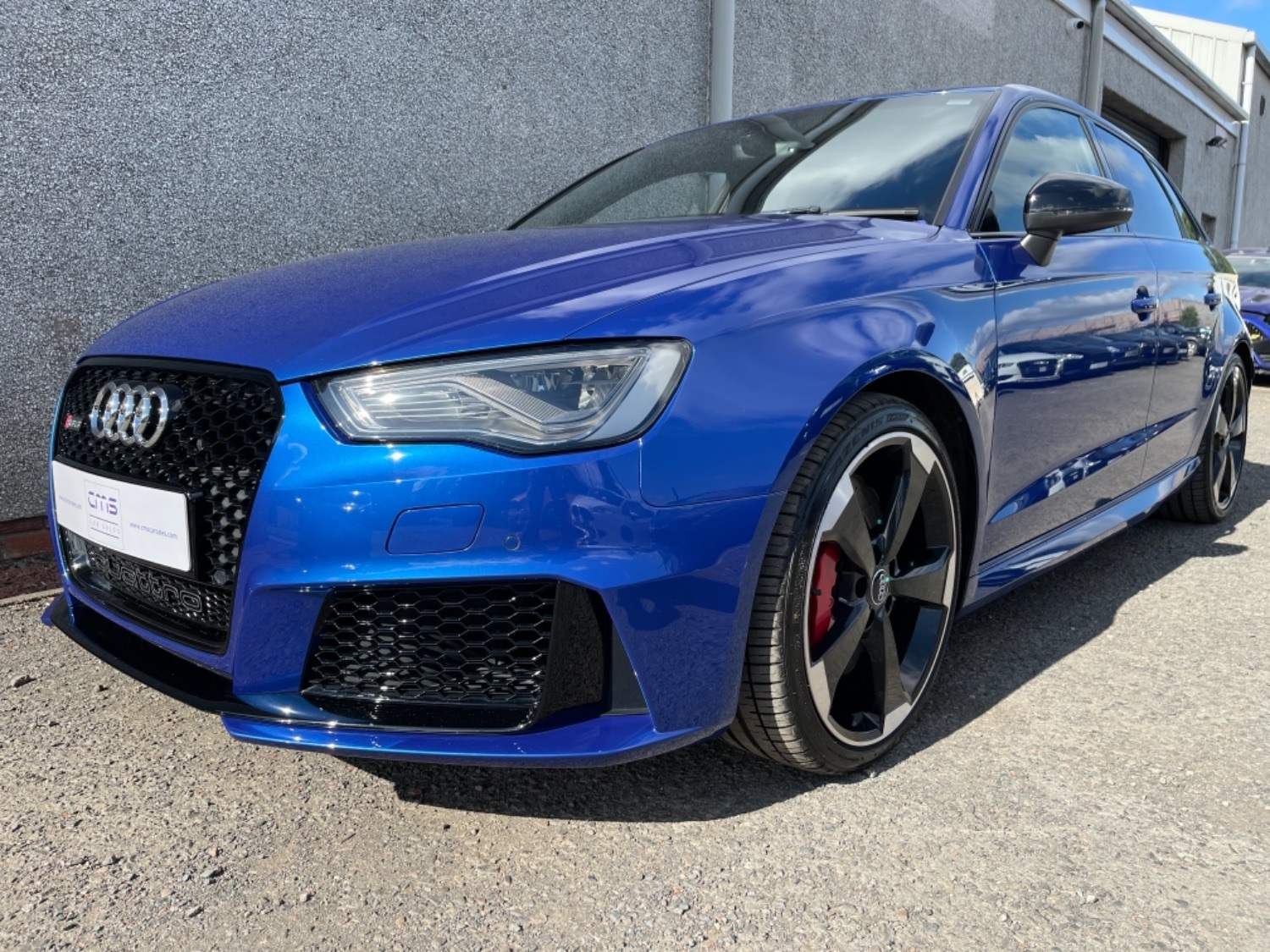For sale Audi RS3 Sportback Quattro in Sepang Blue. 2016/16 reg with over £10000 of factory options.