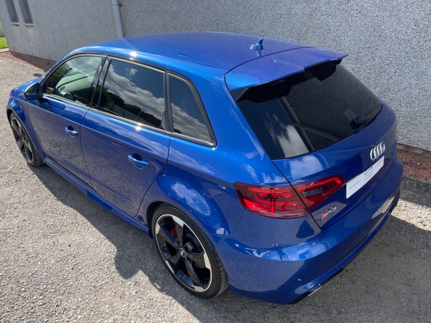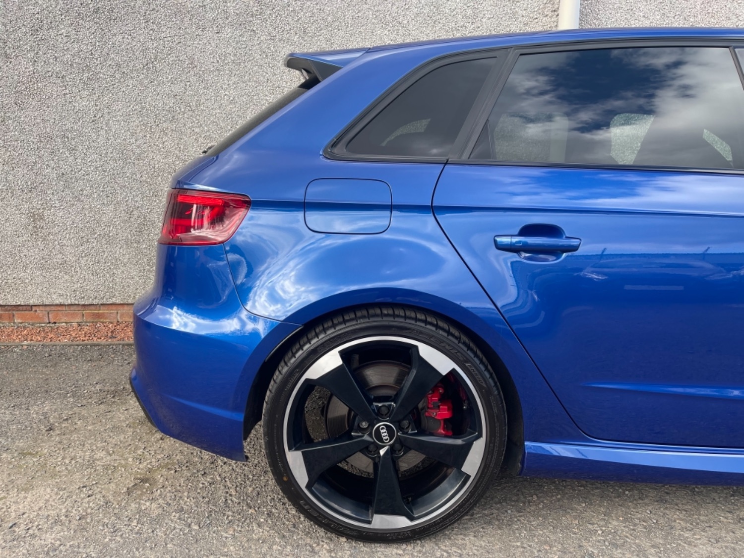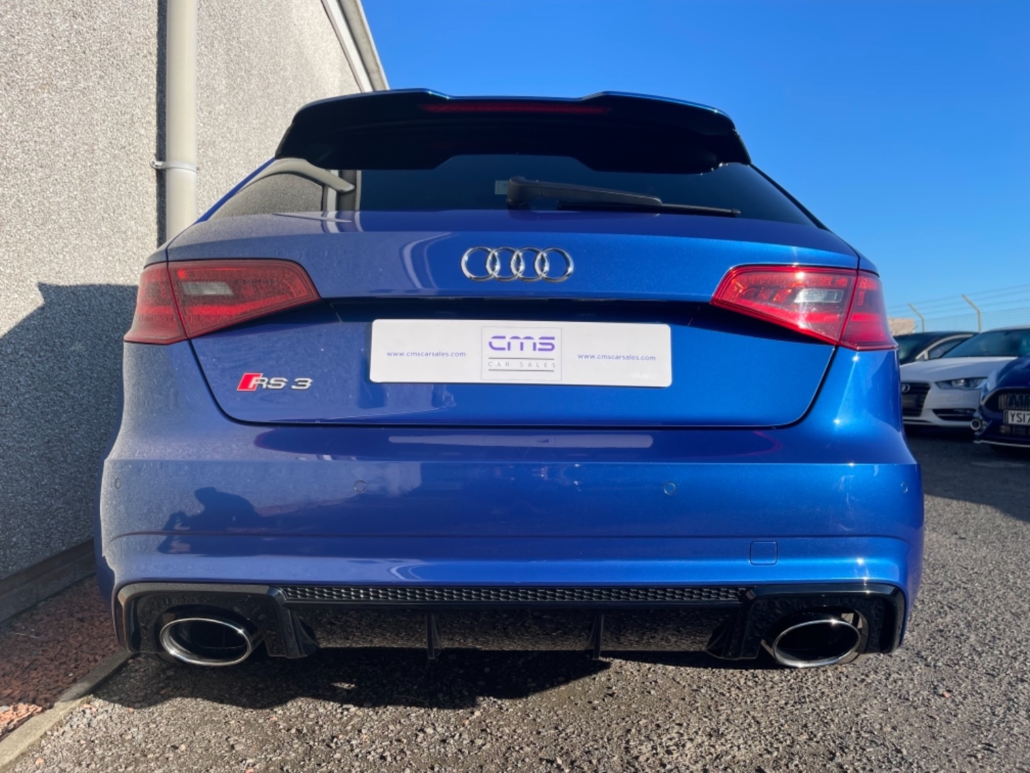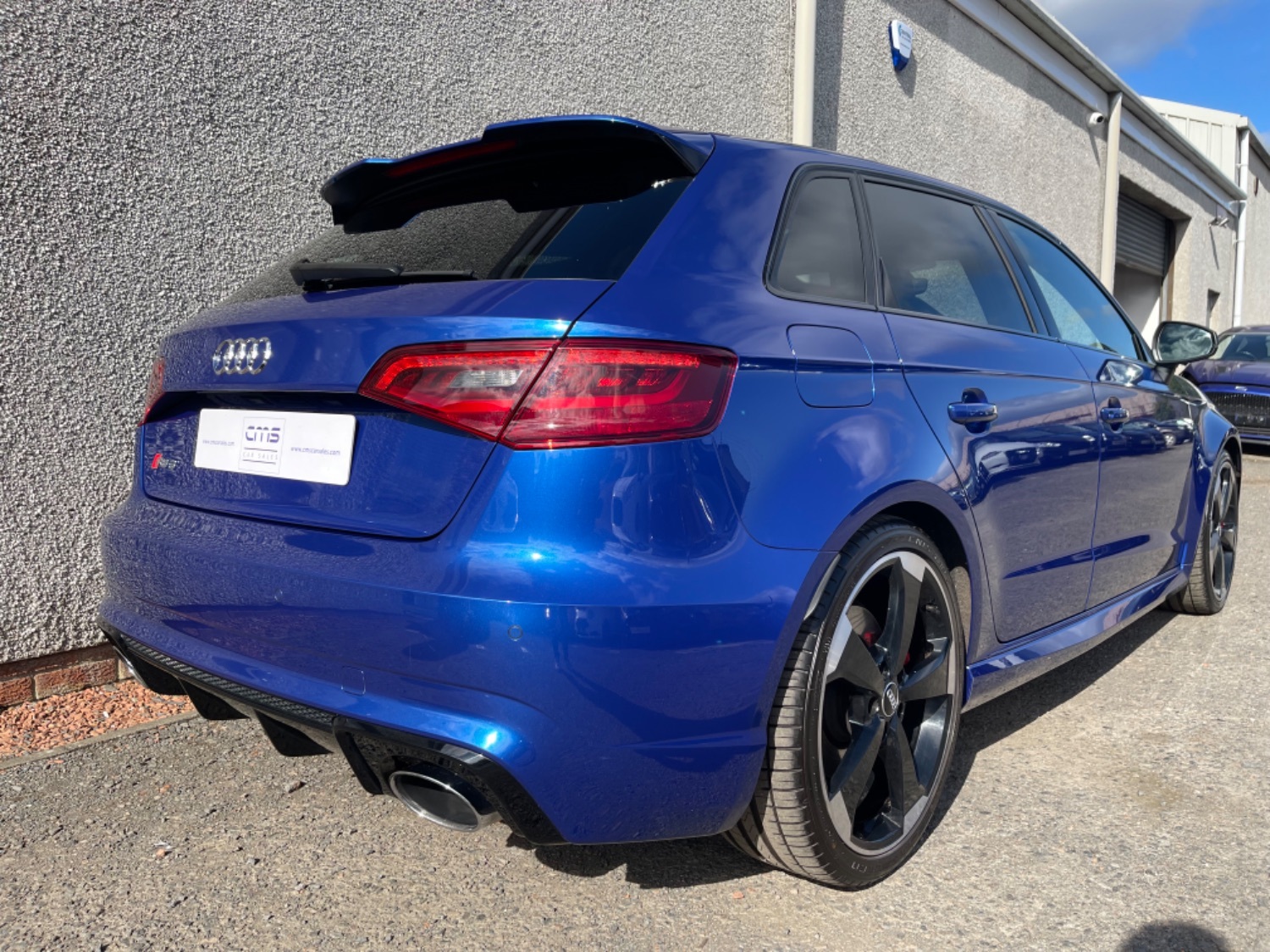 For sale Audi RS3 Sportback Quattro in Sepang Blue. 2016/16 reg with over £10000 of factory options.