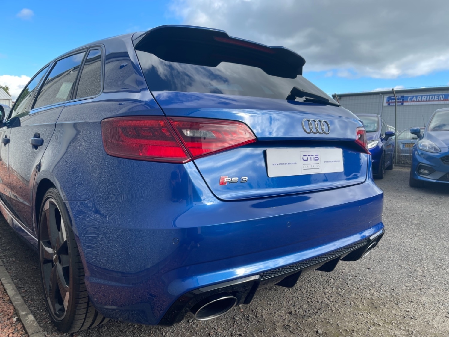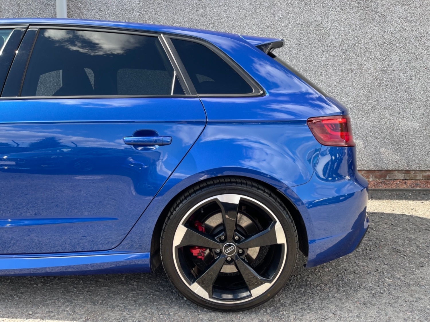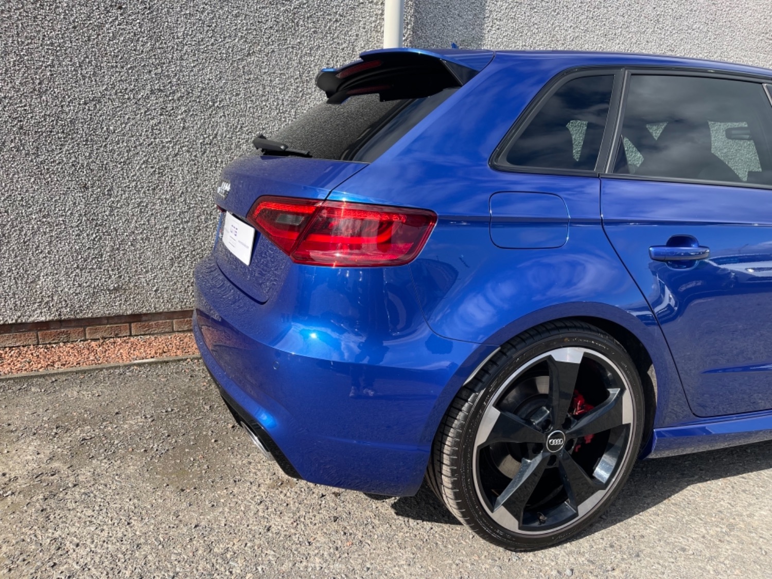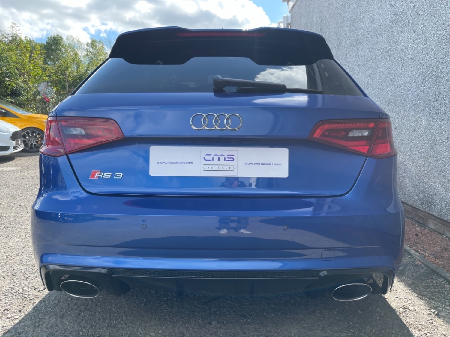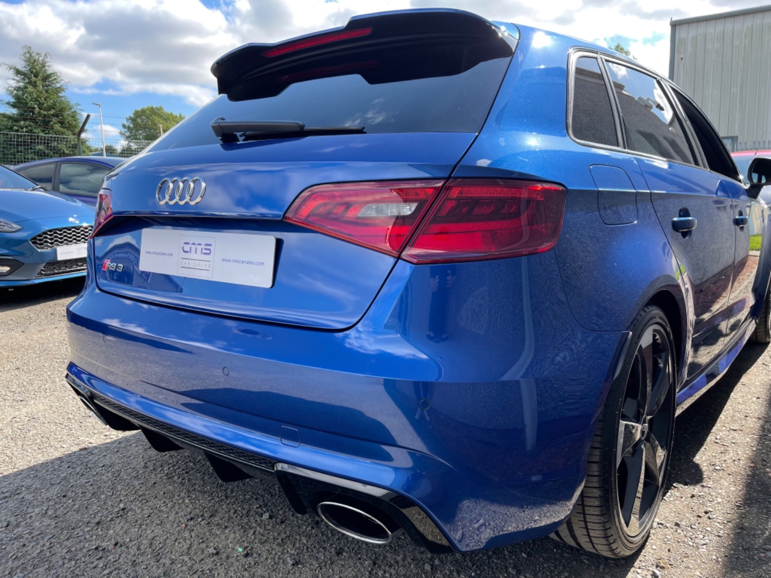For sale Audi RS3 Sportback Quattro in Sepang Blue. 2016/16 reg with over £10000 of factory options.