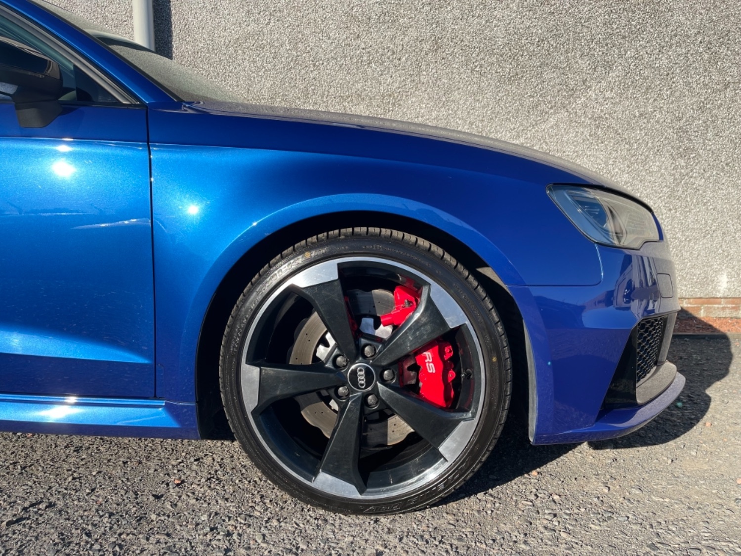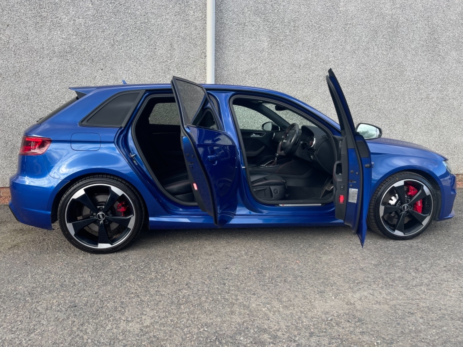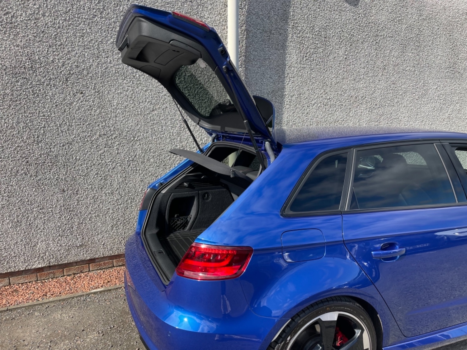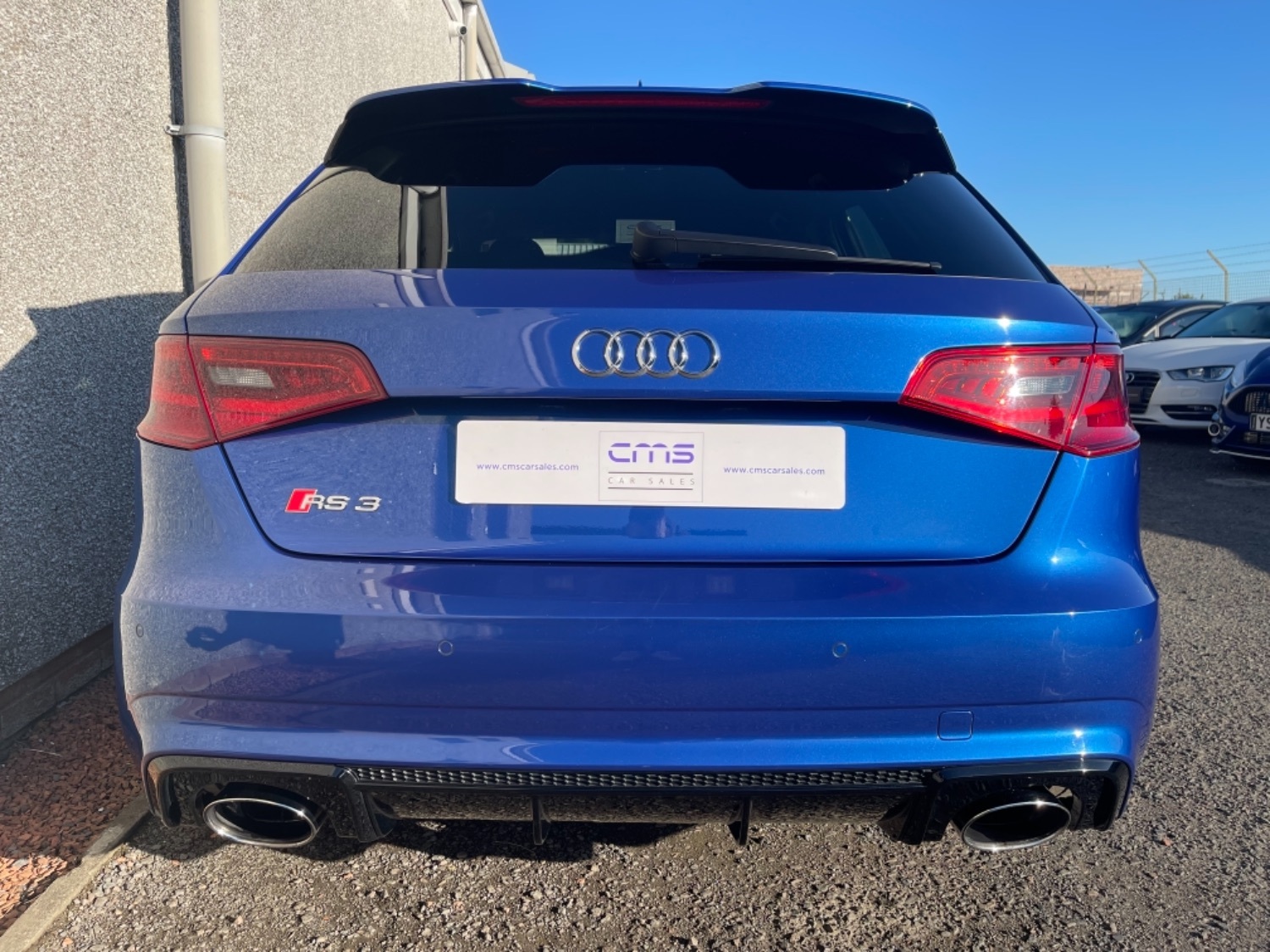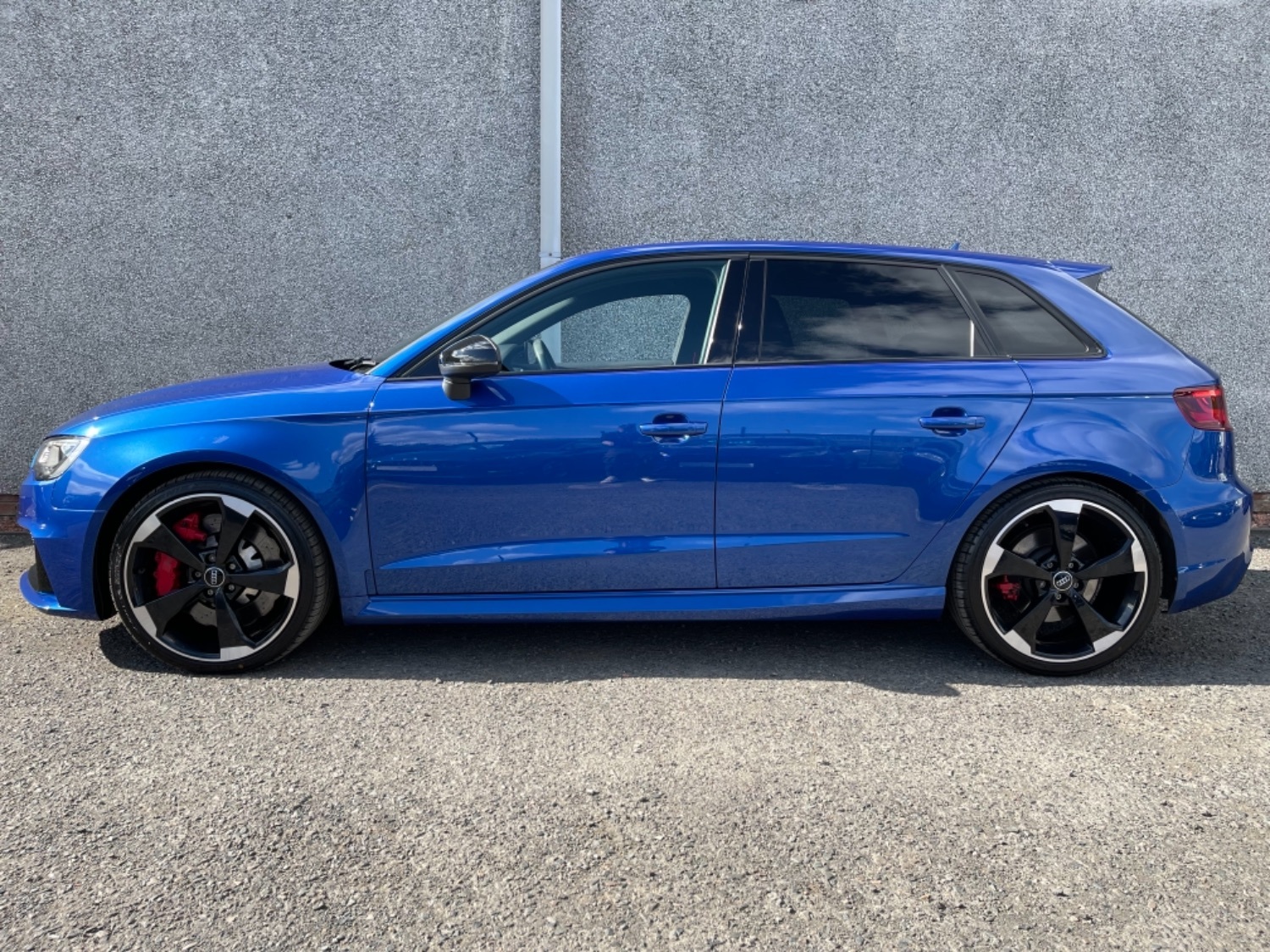 For sale Audi RS3 Sportback Quattro in Sepang Blue. 2016/16 reg with over £10000 of factory options.