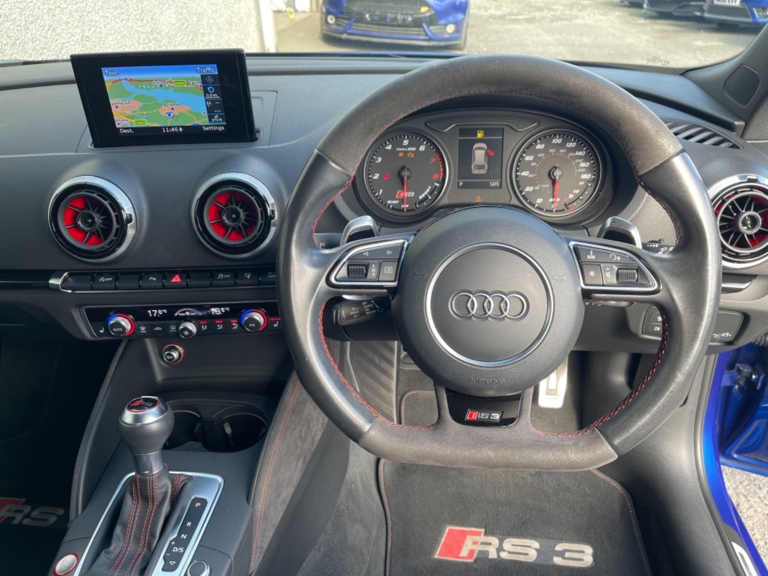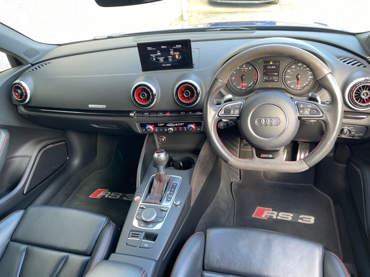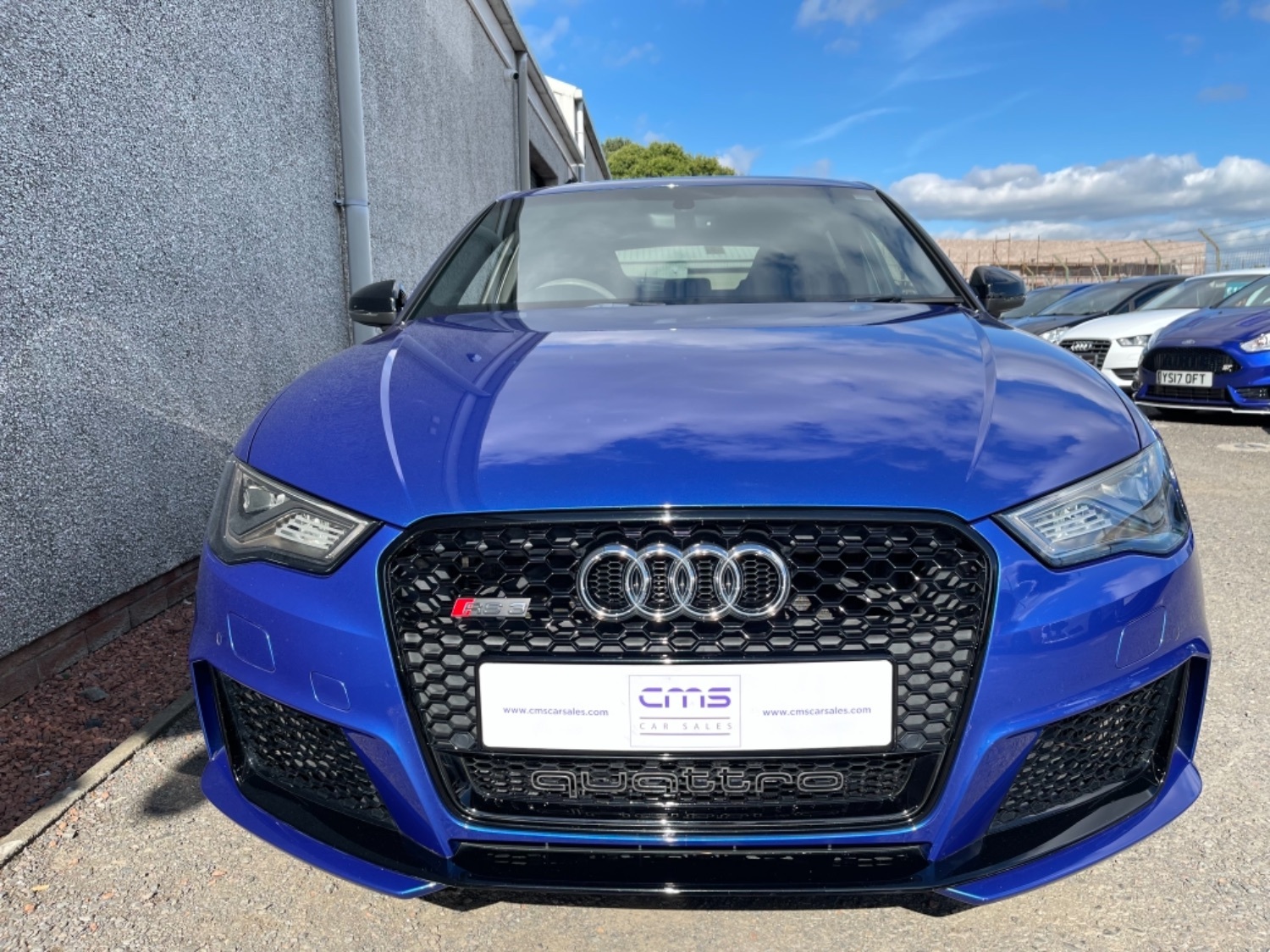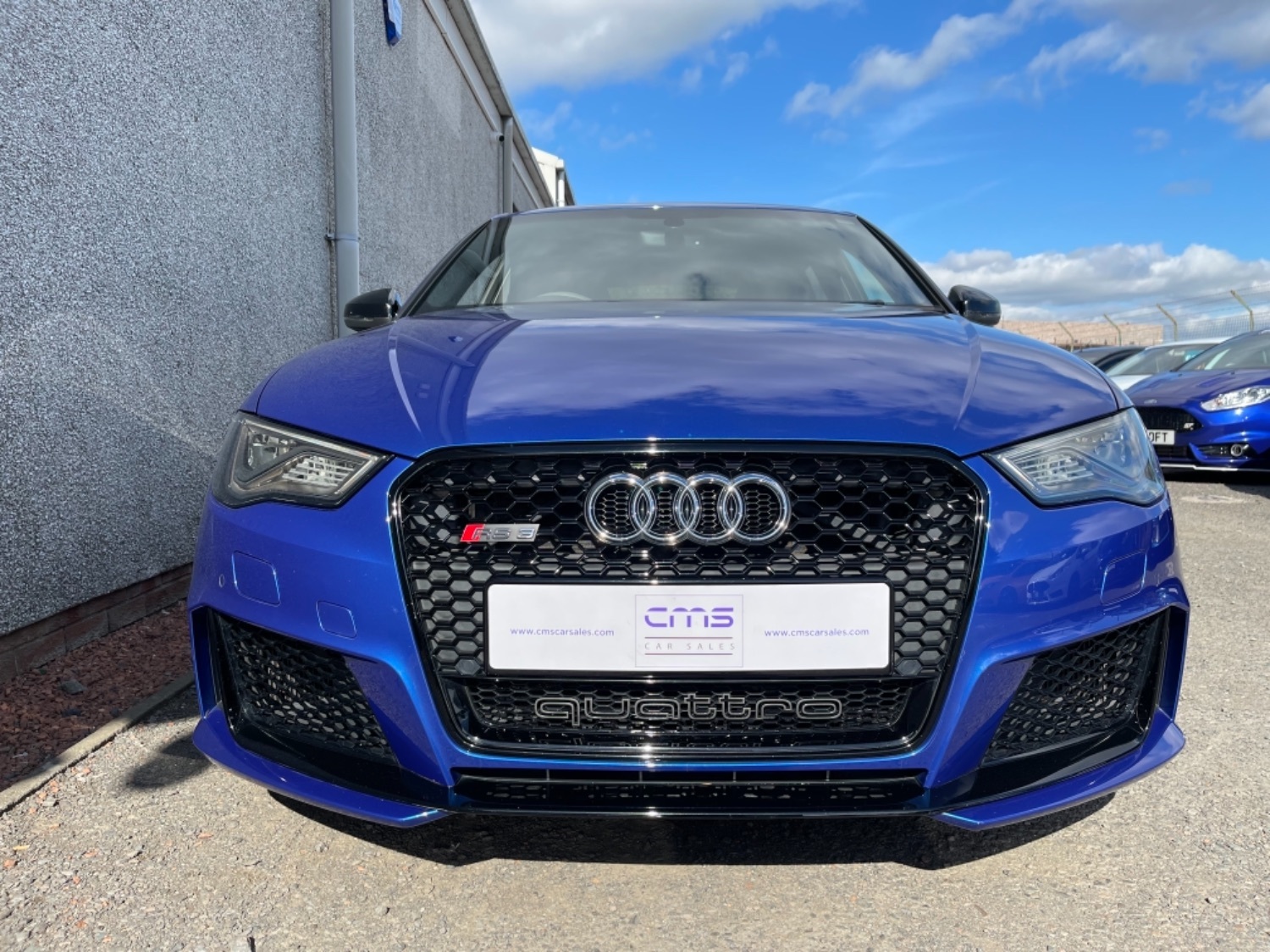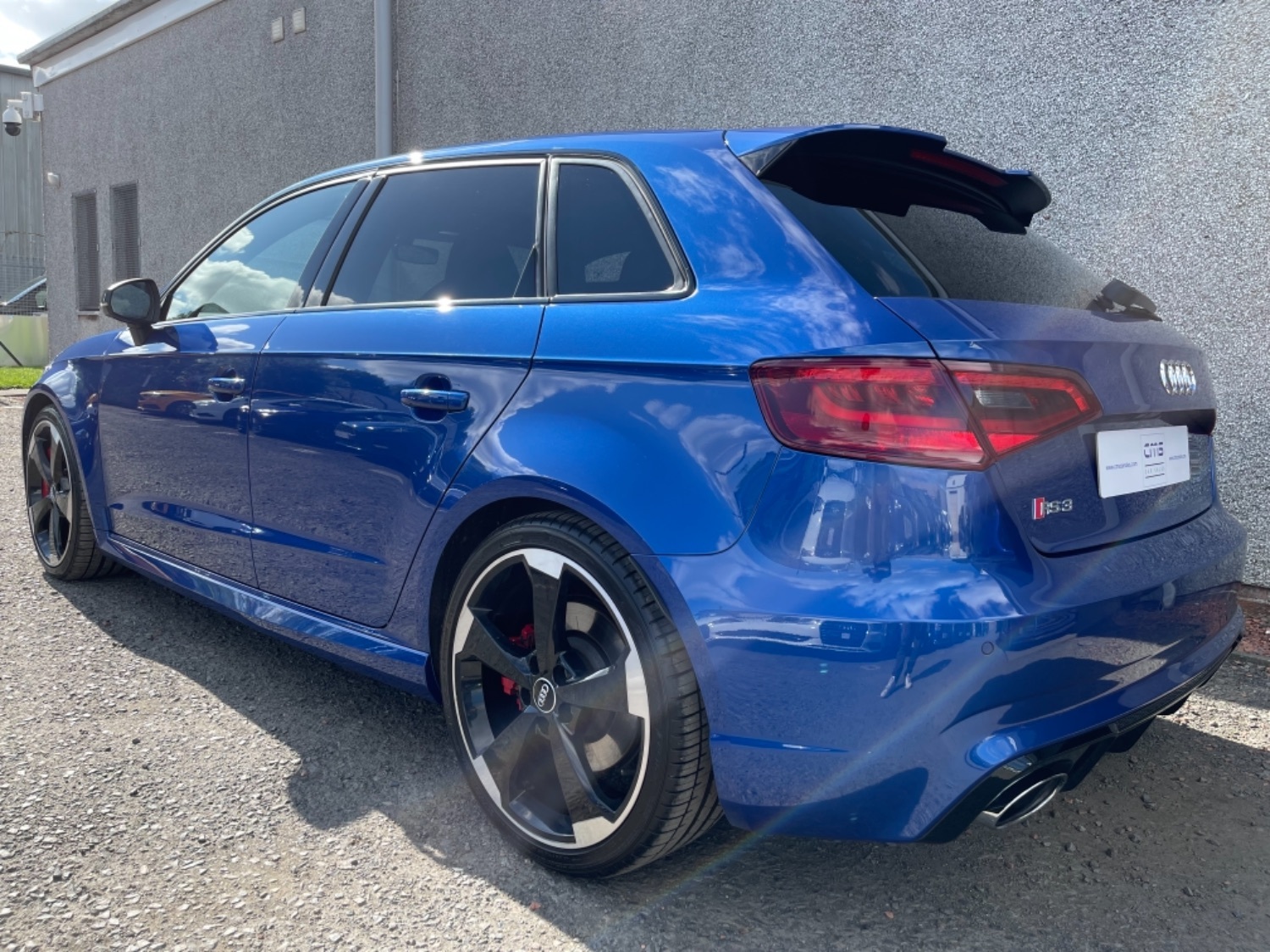 For sale Audi RS3 Sportback Quattro in Sepang Blue. 2016/16 reg with over £10000 of factory options.