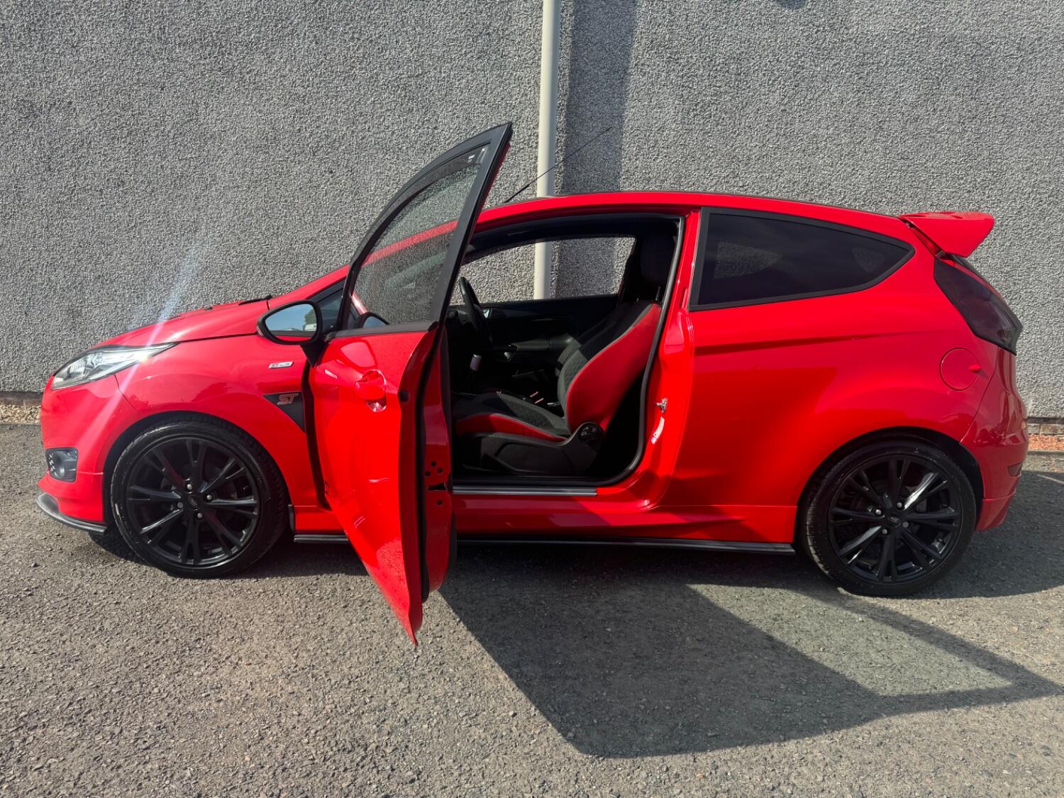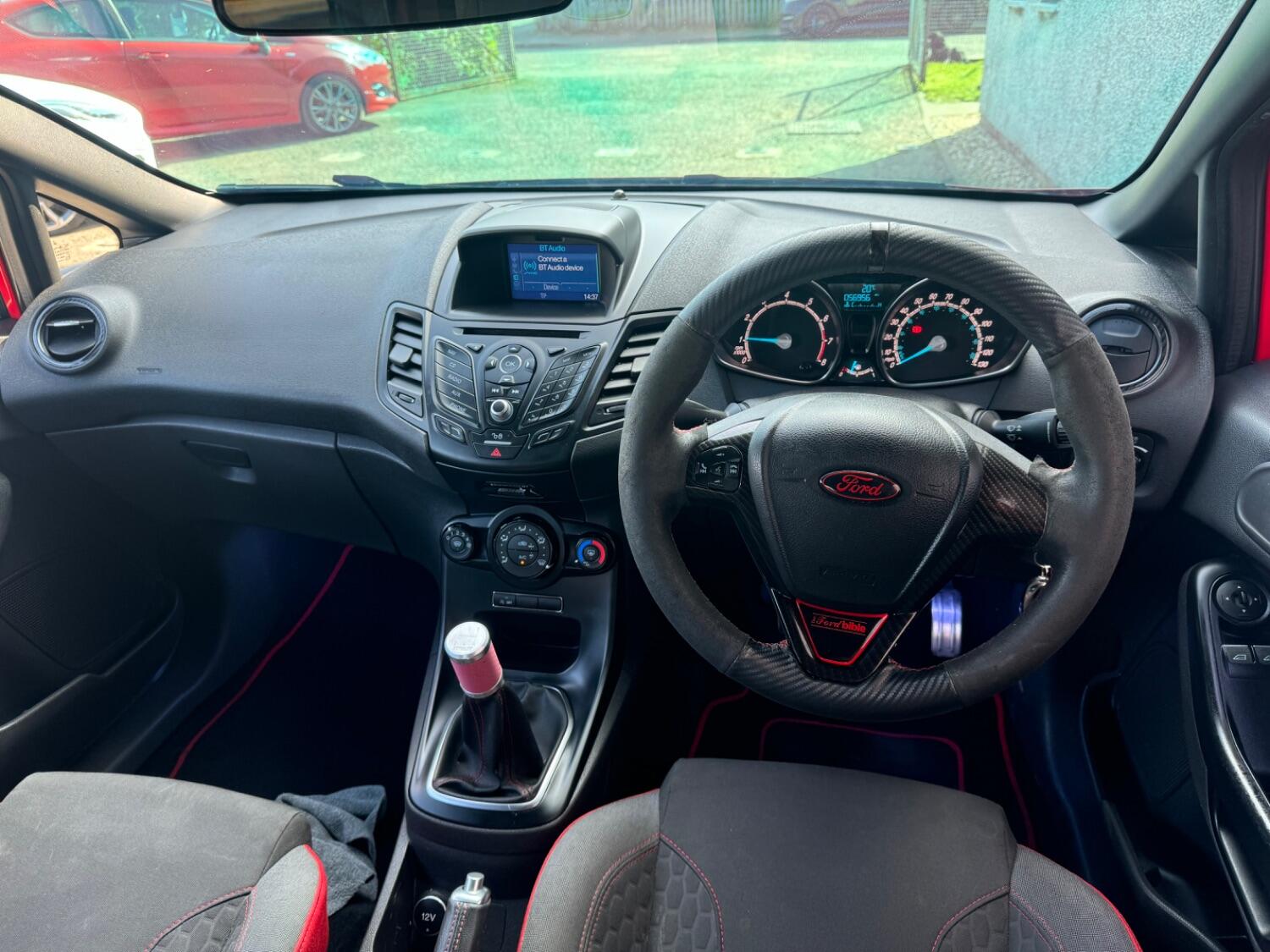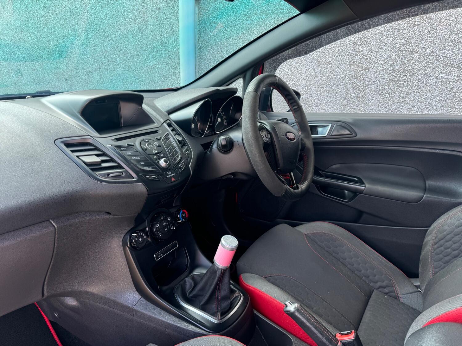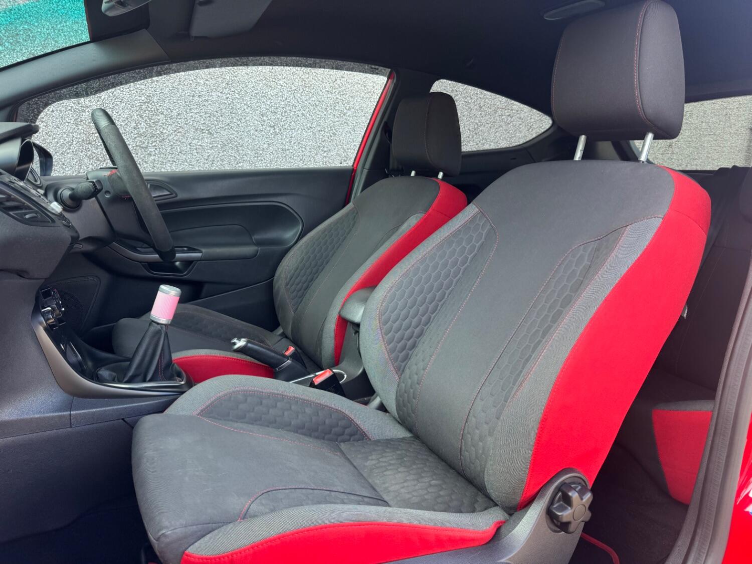Standard features include- Alloy Wheels, Body Coloured Bumpers and door handles, Coilovers, Air Conditioning, Sat Nav, Cruise control, Powerfold Mirrors, Digital Climate Control, Recaro Sports Seats, Ford Sync, AUX/USB connection, ST Style Pack, Rear Privacy Glass, Bluetooth, Voice Control + Audible text messaging, Auto wipers + Rain Sensors, Electric Windows, Electric Mirrors, Front & Rear Heated Screens, Quick clear front windscreen, Front & Rear fog lights, Deflation detection system, Hill start assist, Ford Sync which includes emergency assist. Remote Central Locking, Alarm/Immobiliser, Driver/Passenger & Side Airbags, Rear Headrests, ABS, PAS, Isofix Child Seat Anchor Points, 3x3 Point Rear Seat Belts, Front & Rear Fog lights, Adjustable Steering Column/Wheel, Electric Boot Release, Headlight Levelling Control, Exterior Temperature Gauge, Air Recirculation Control, Trip Computer.